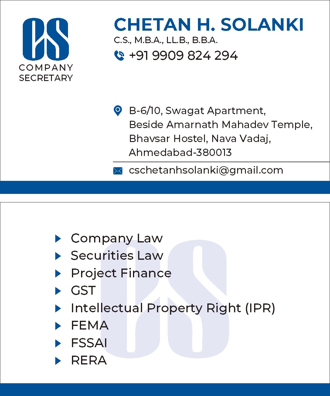 Business Name: Chetan H. Solanki – Company Secretary